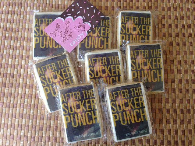 This is a cookie… a very delicious (yes, I ate one) shortbread cookie designed with the cover of my book as the frosting top. I ask you: WHAT COULD BE BETTER THAN THAT??!