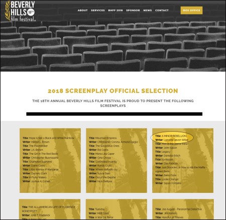 This, to the uninitiated, is the official announcement alerting the public that my screenplay has been designated a “2108 SCREENPLAY OFFICIAL SELECTION” for the 18th Annual Beverly Hills Film Festival.