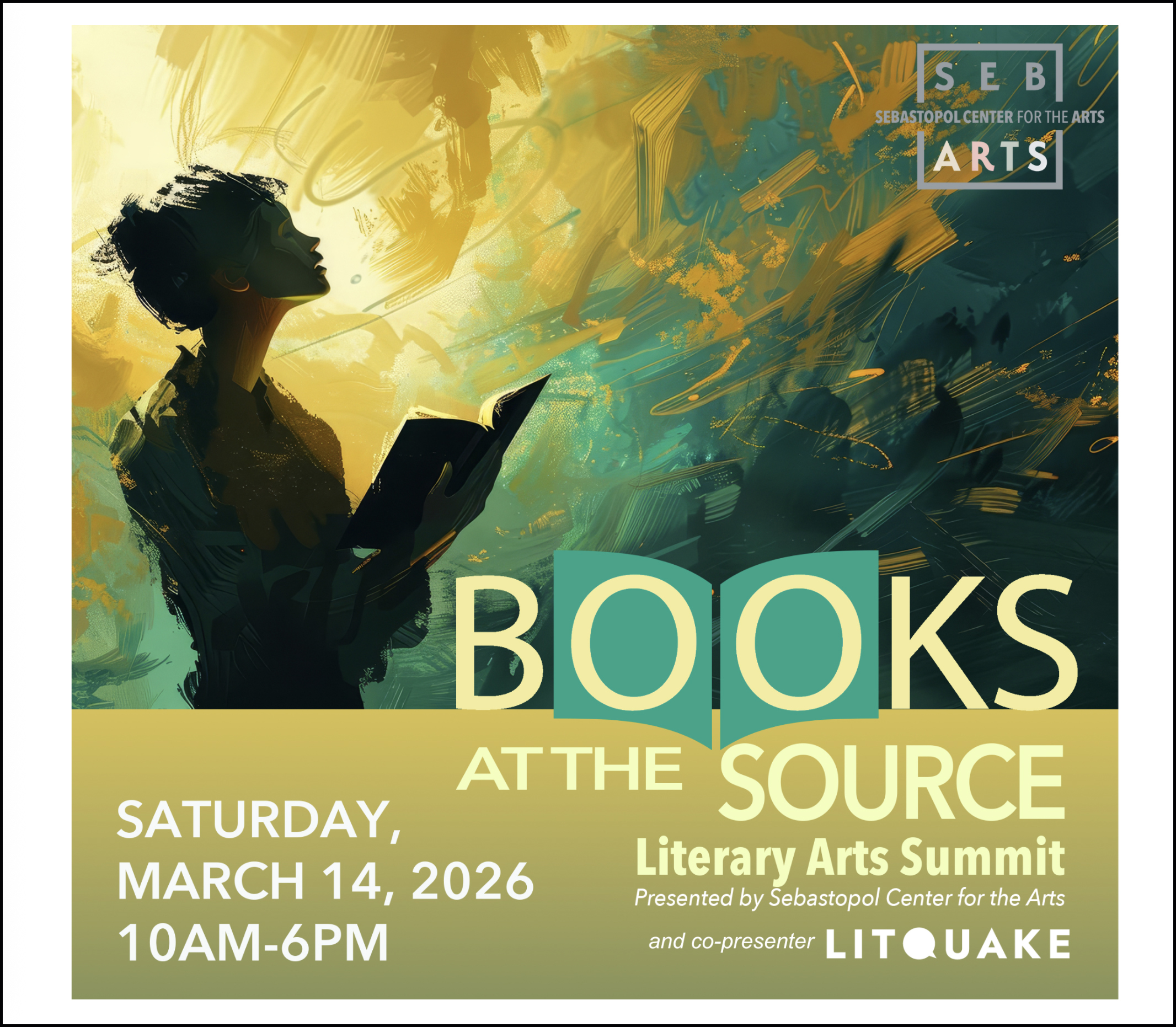 Sebastopol Center for the Arts is excited to share our newest offering to the Literary Arts community. On Saturday, March 14th, 10AM – 6PM, Books at the Source: Literary Arts Summit will feature panel presentations and workshops by authors and teachers of fiction, memoir, nonfiction & poetry at our 17,000 sq ft facility in the heart of downtown Sebastopol. A co-presentation with LitQuake San Francisco, this is a special opportunity to connect with Bay Area talent and go to the source with authors who share their inspiration and purpose.